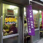 ideshoten.jpg初めて降り立つ和歌山駅。 駅前のロータリーから田中町という交差点目掛けて国体道路を進むと、辺りから漂う豚骨臭。 うっほほー。 まだお店まで距離がありそうなのに、早くも匂いで歓迎してくれるとは嬉しいでないの(笑)。 中華そば「井出商店」。 紅い暖簾を潜ると女性客が3人ほど。こじんまりした店内に、懸命に麺を啜る音だけがしています。デフォルト「中華そば」で。「特製中華そば」は、チャーシューの量が多いんだそうだ。