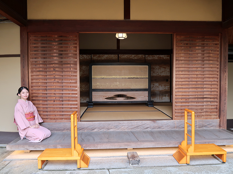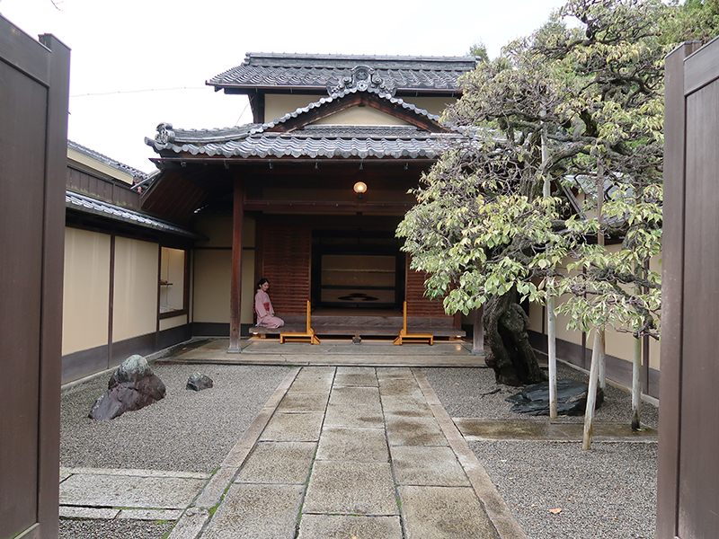 打ち水のされた敷石の先には、