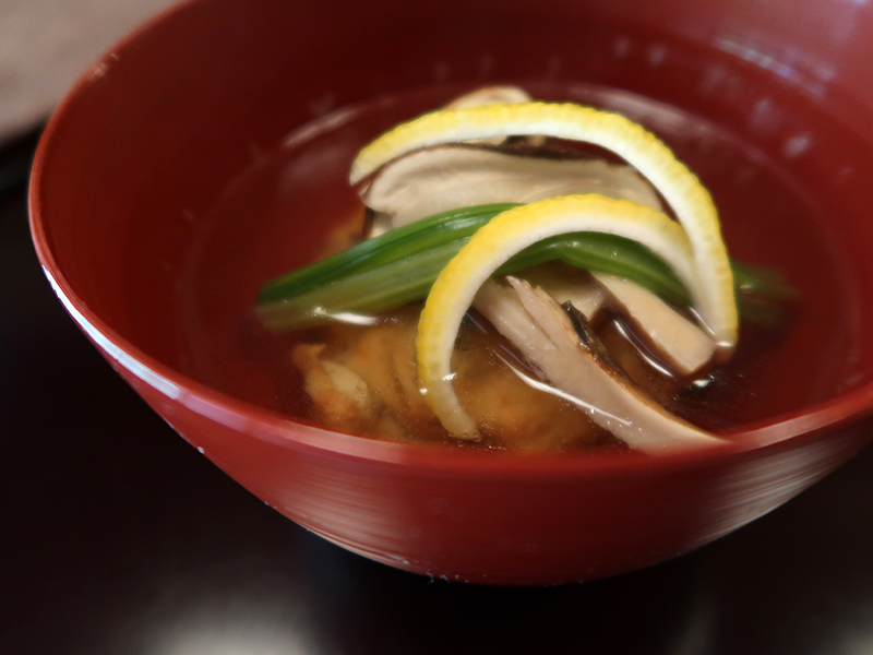 お椀には、木の葉しんじょうと松茸、青菜軸。
