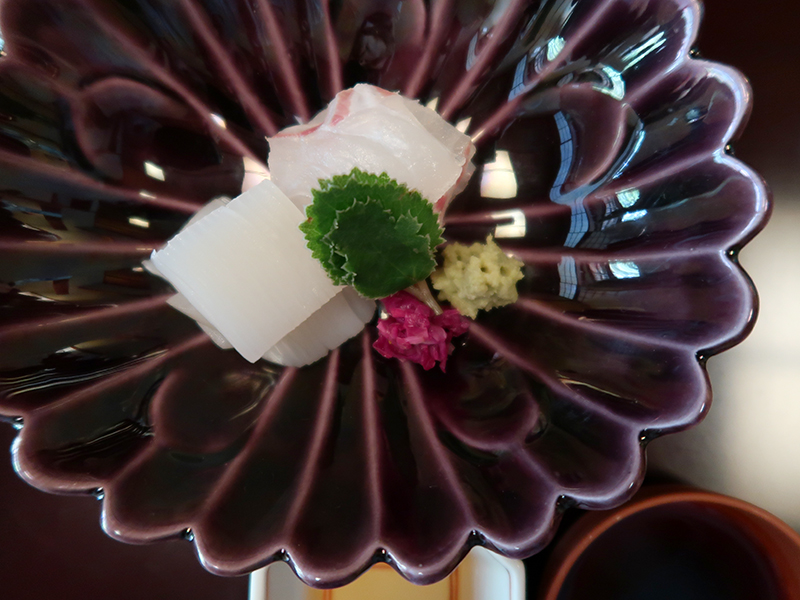 お造りは、防風をあしらった鯛と烏賊。