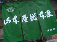 なんとなく見覚えのある緑色は、そうそう、名古屋名物味噌煮込みうどんの一方の雄、「山本屋総本家」の暖簾の色だ。