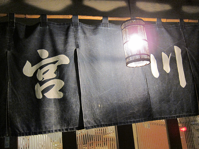 暖簾には、左隅に小さく「鳥」とあり、外連味のない書体で染め抜いた「宮川」のふた文字。