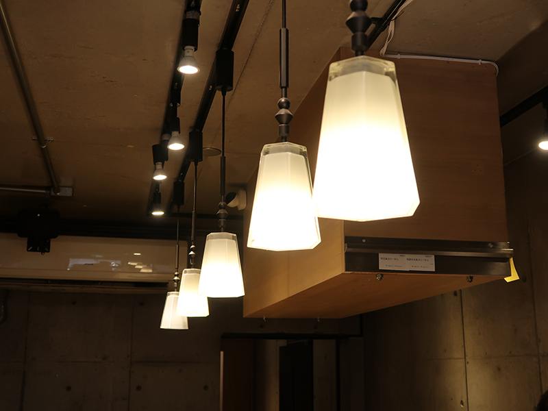 入口脇にある券売機にてチケットを買う。 細かく並んだ照明の下、蟹歩きしつつ、
