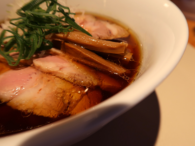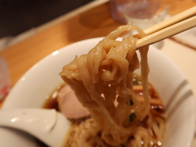 スープはやや濃いめに映る醤油に澄んでいる。