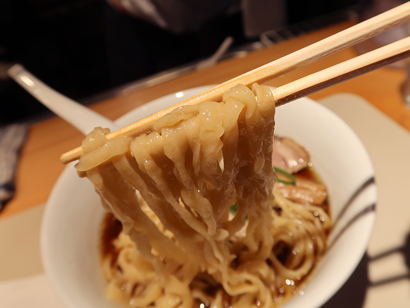 そして、白眉はやっぱり手打ちの麺。 カウンターの中でワンオペしている店主の、