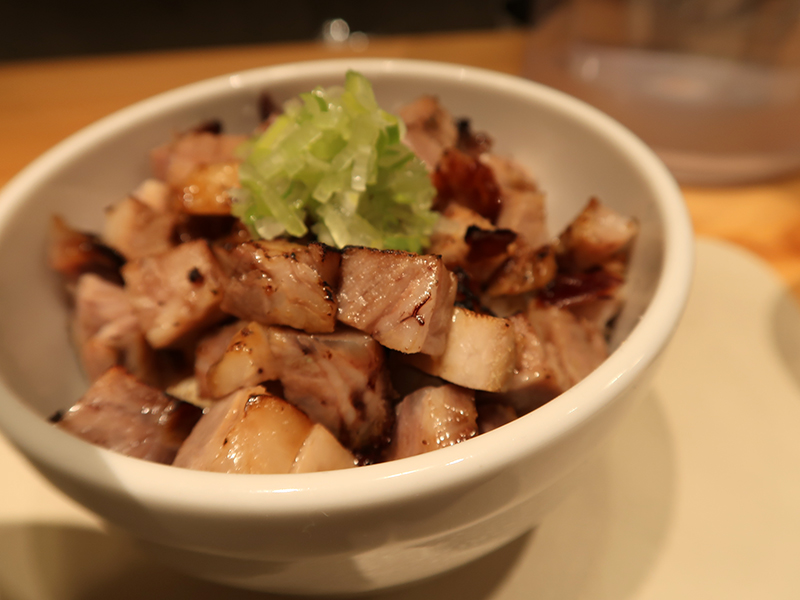 たっぷりと盛り込まれるは黒豚焼豚。 バーナーで炙って芳ばしく仕立てた焼豚に、