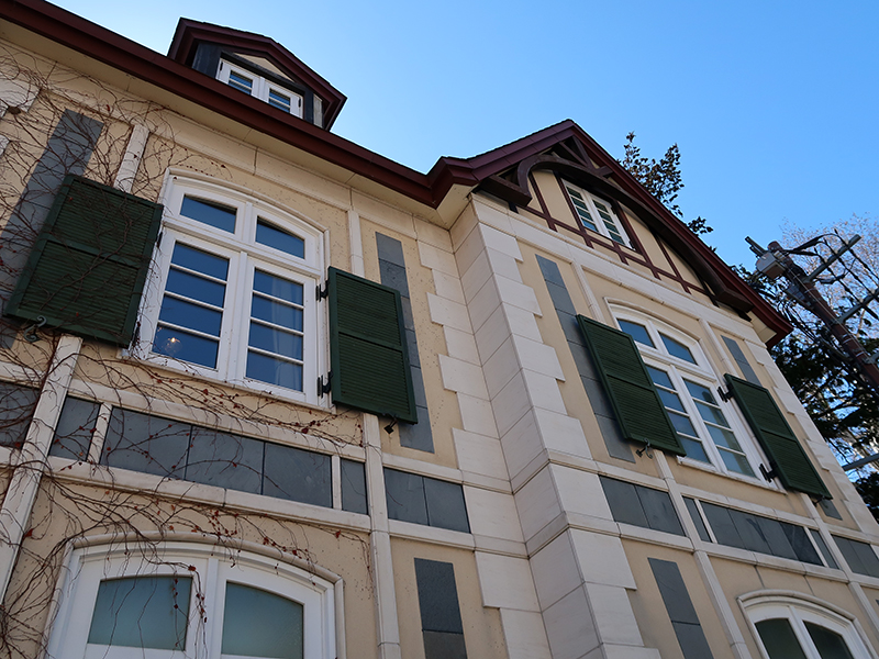 洋館と呼ぶに相応しい装いの一軒家が現れた。 振り返れば、その先すぐに円山公園の木々が映る。