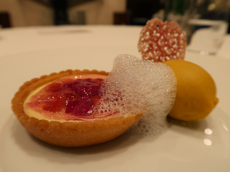 マンゴーのソルベ 新生姜の香り」。 タルトの中にフロマージュブラン。