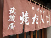 所沢名物焼だんご「奈美喜屋」で 焼き立て湯気と醤油の芳ばしさ