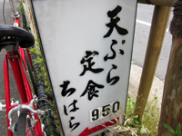 てんぷら「天寿」で 天丼の蓋のなぞ紫芋天と牡蠣天と