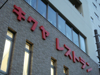 浮かび上がるような赤い壁面文字は、一気に新装なった建物をこのエリアのランドマークに仕立てています。