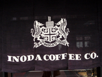 赤いポットと緑の四角を組み合わせた図案が「イノダ」のトレードマークだ。