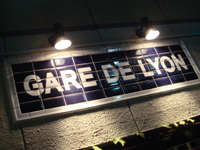 白い縁取りで囲み、クリアーな紺色のタイルに白抜いた文字は「GARE DE LYON」。