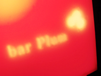 よくよく覗き見ると、円をみっつ重ねたような記号と「bar Plum」という文字がぼんやりとあるのが判る。
