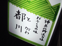 「おかあさんがトガワさんなんです?」と訊くと、「いえいえ、あの、丹沢に拠点があって、川と都(みやこ)を結ぶというか、川の恵みを東京で提供できれば、なんてことで、ま、都川としたんです~」と女将さん。