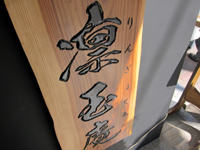 和菓子「青柳」の脇で盛んにランチ弁当を売っていた、とんかつ「一(はじめ)」。 その「一」がいつの間にか閉めてしまった地下のテナントに新しいお店が出来ていました。 階段脇の壁に掲げる彫刻看板には、 「凛玉庵」とある。 それよりもなによりも、 “地粉うどん”というフレーズが惹かれるところ。 すわ、武蔵野うどんの新店が八丁堀に登場か?