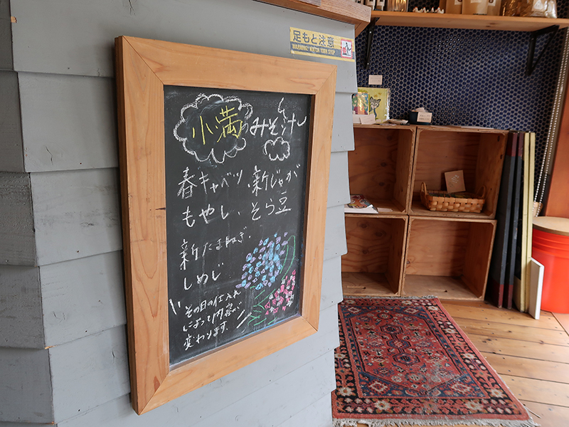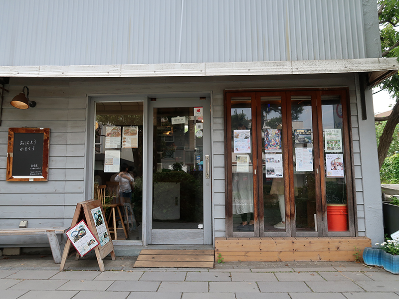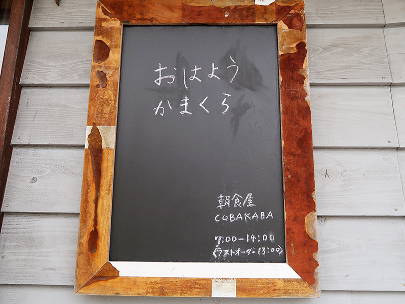 「Good Morning Kamakura」と刻んでいる。 入口左手の黒板には、
