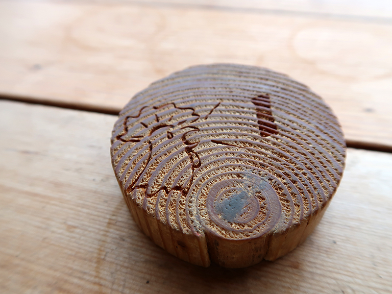 鶏のイラストと番号を彫り込んだもの。 食券の代わりにこんなものを用意するなんて、