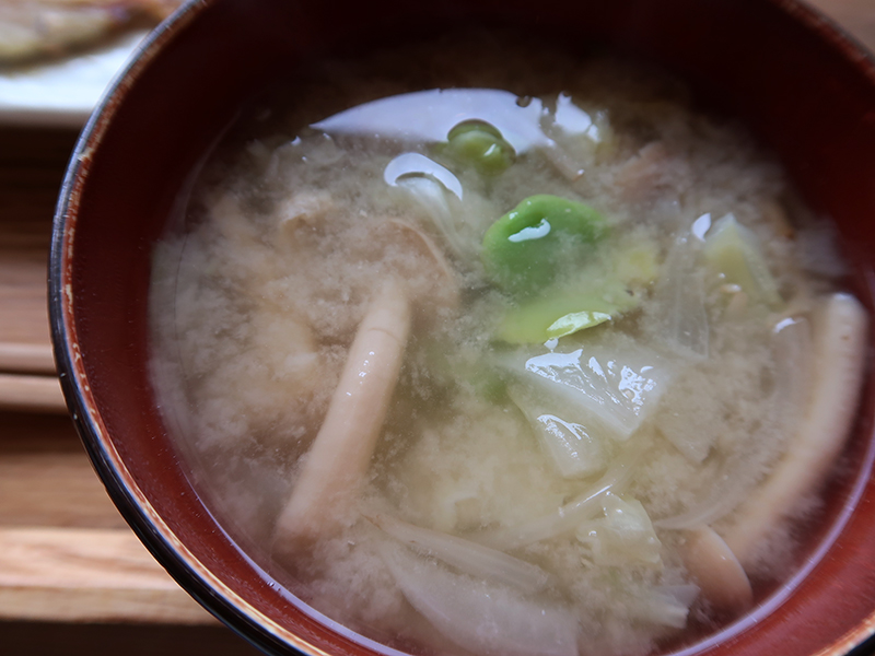 空豆にもやし、しめじ。 塩気優しく、柔らかく甘味を感じる、