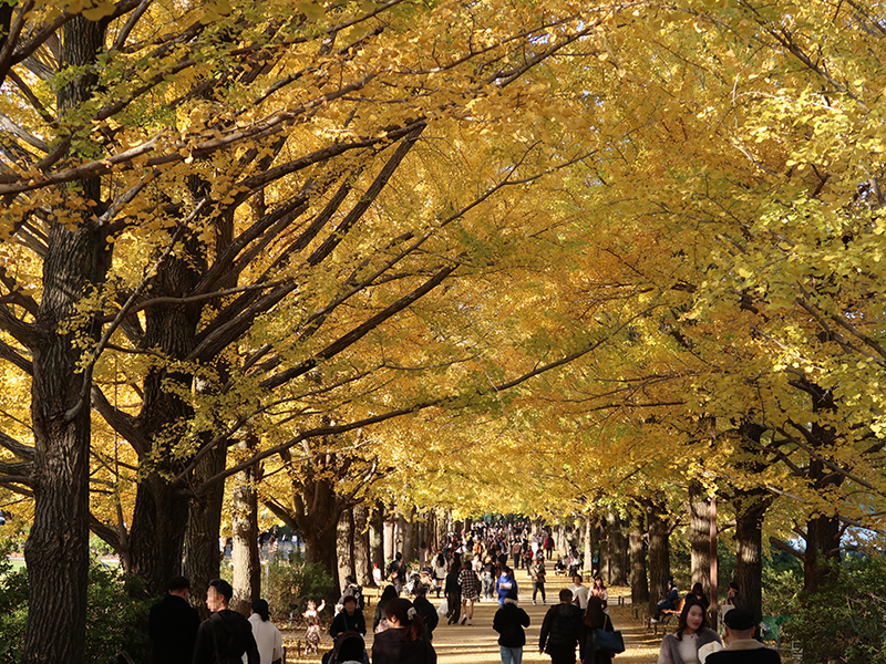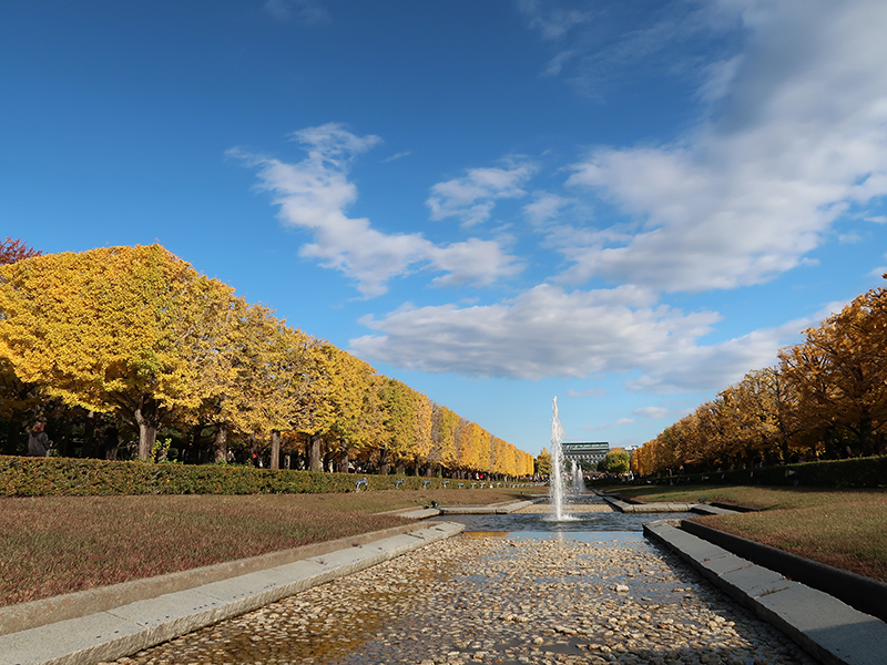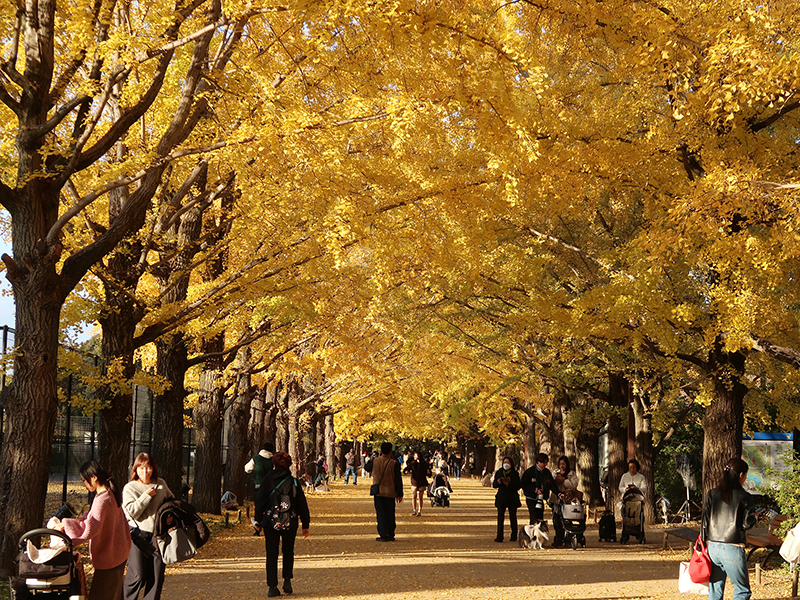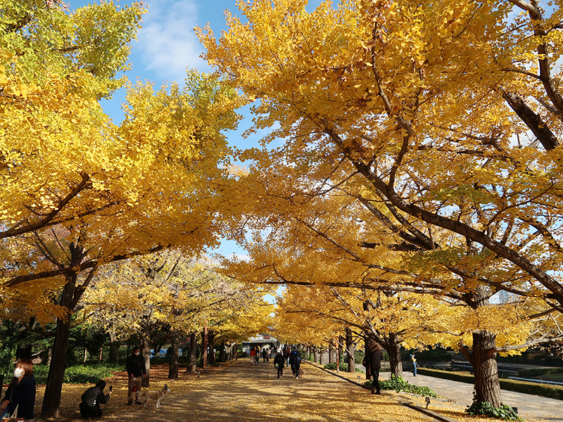 かたらいのイチョウ並木へ。 如何にも銀杏並木らしい銀杏並木だなぁと、