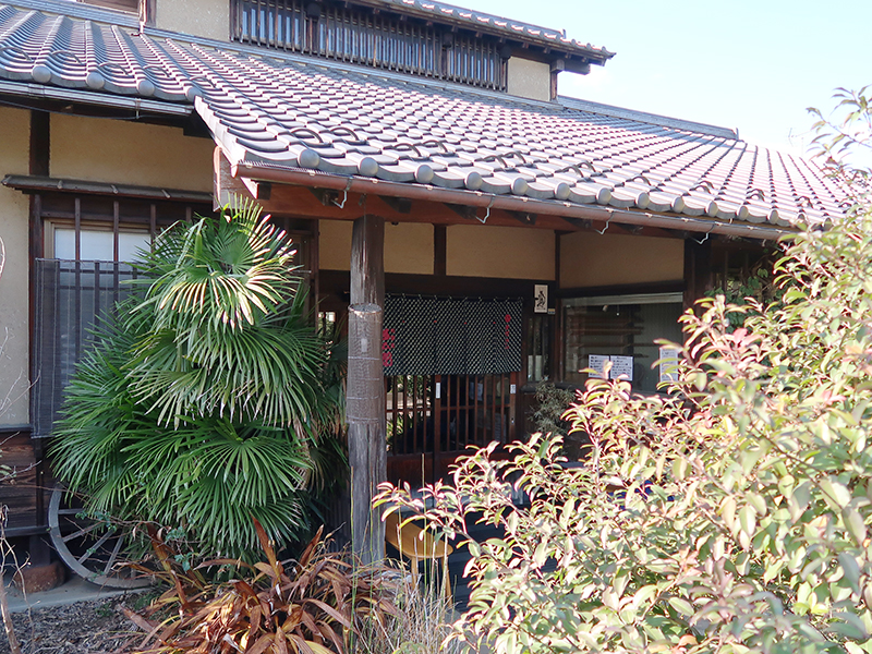 農家風の平屋の家屋が建っている。 瓦屋根の中央には、越屋根が載っている。