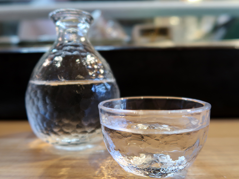 涼し気な硝子の酒器が、いい。