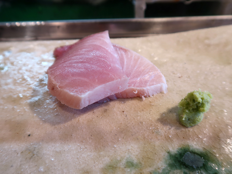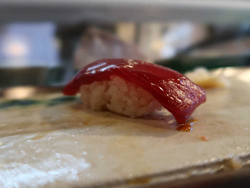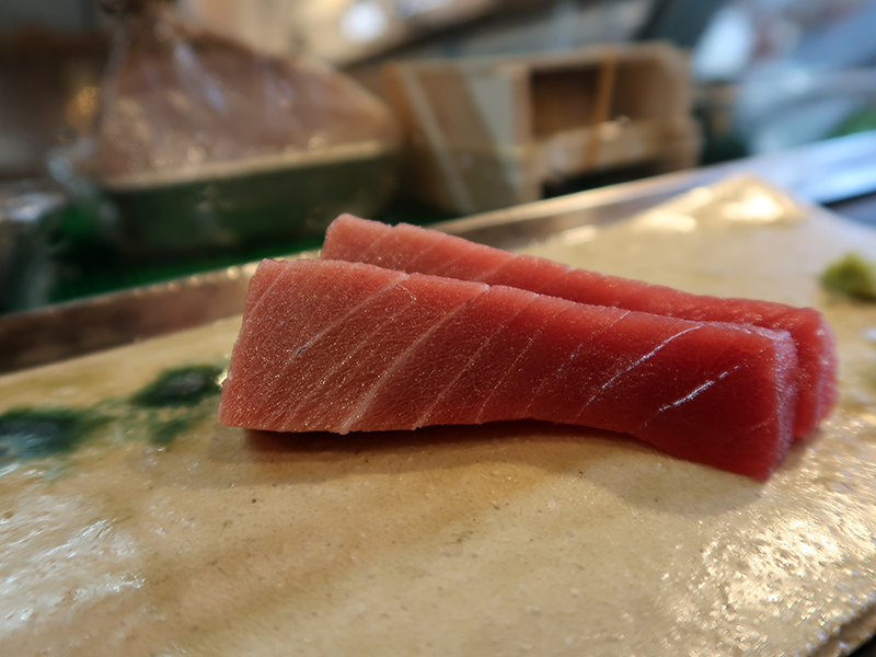 お茶をいただいて、鮪の赤身。