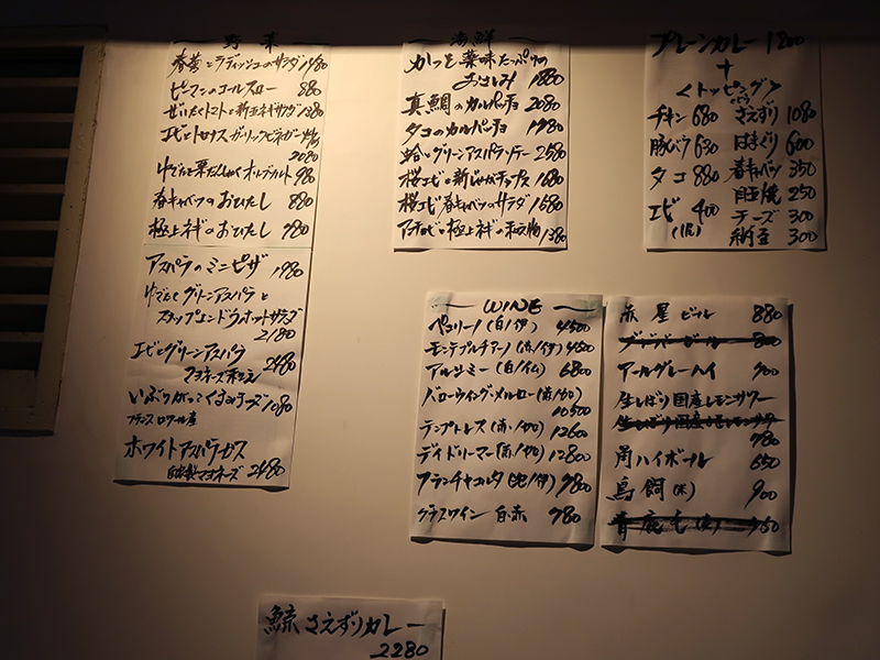 建物左手にある入口脇に貼られた品書きを眺める。 おすすめポジションと思われる、