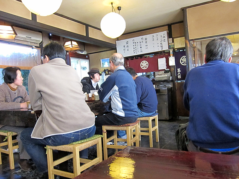 入口の右脇に麺打ち室。 そして、同好の士たちでほぼ満席であります。