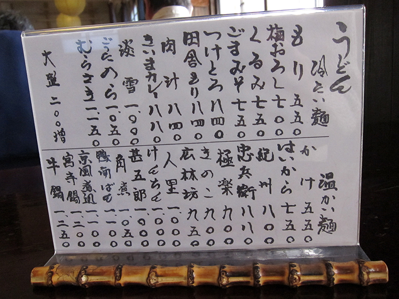 お品書きのウラオモテ。 冷たい、温かい、そば、うどん。